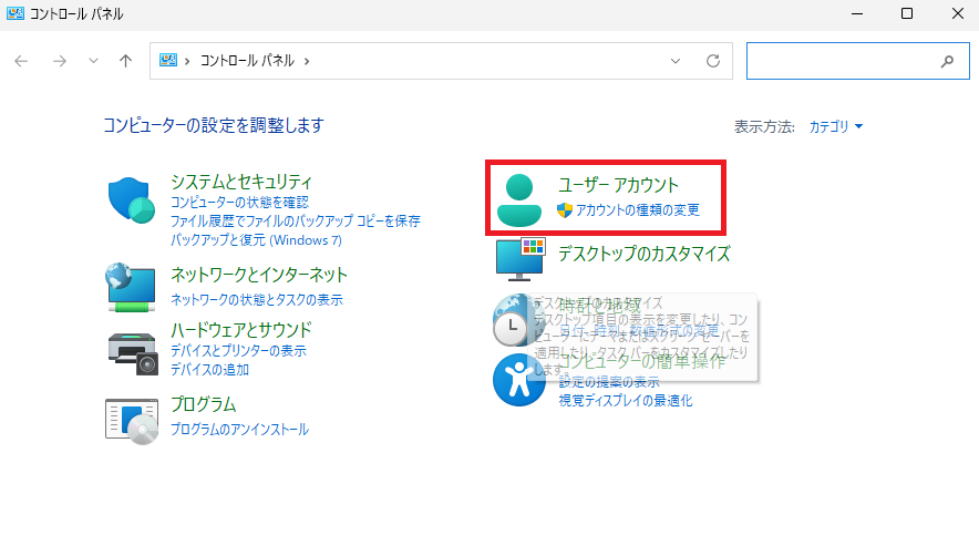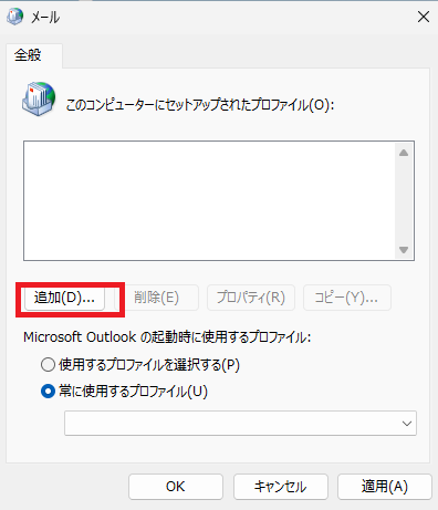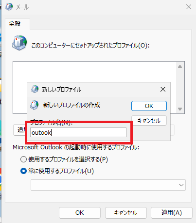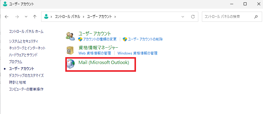 コントロールパネル – ユーザーアカウント – Mail (MicrosoftOutlook)