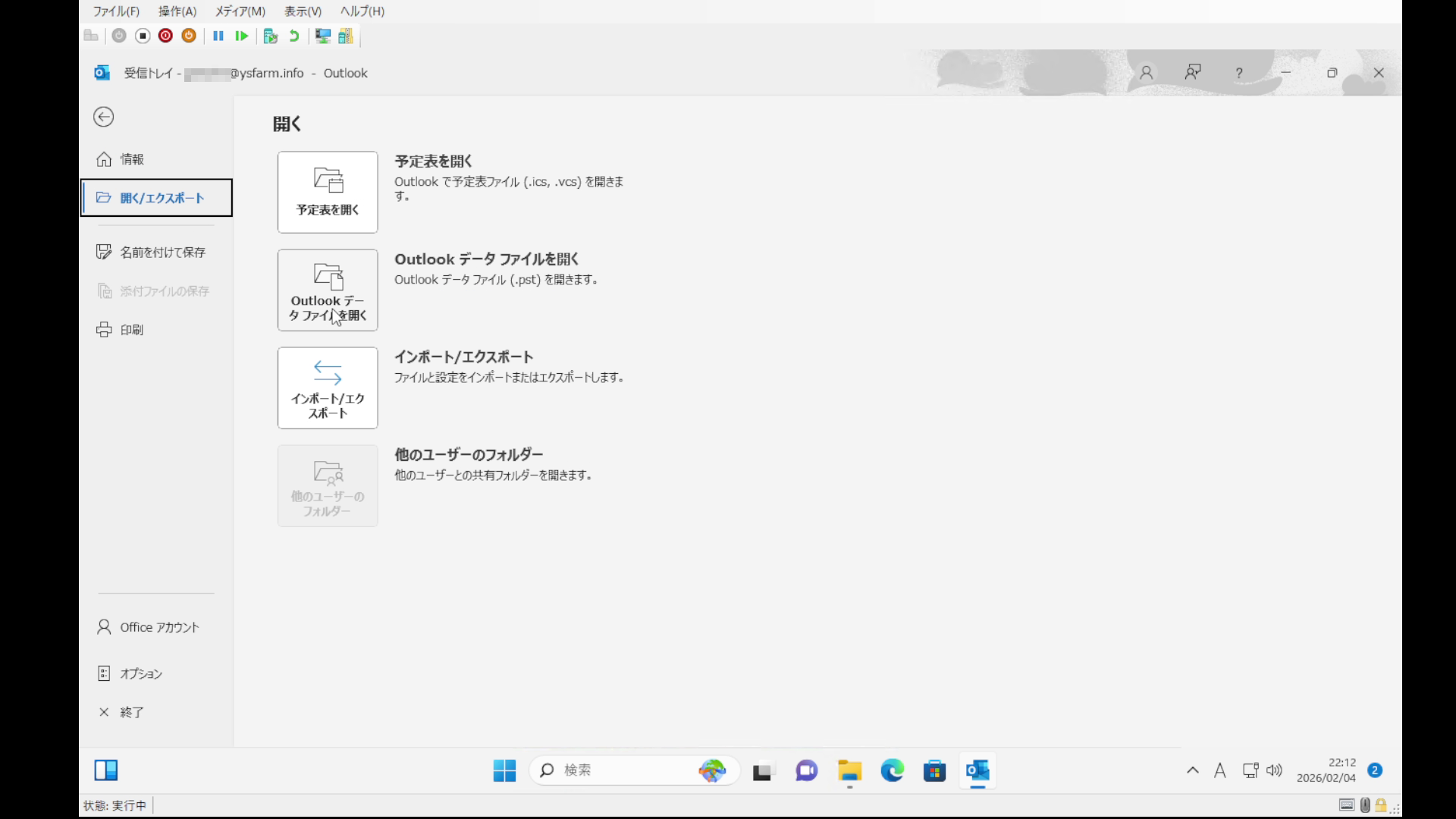 まずはデータファイル触るのでOutlookは終了しておいてください。