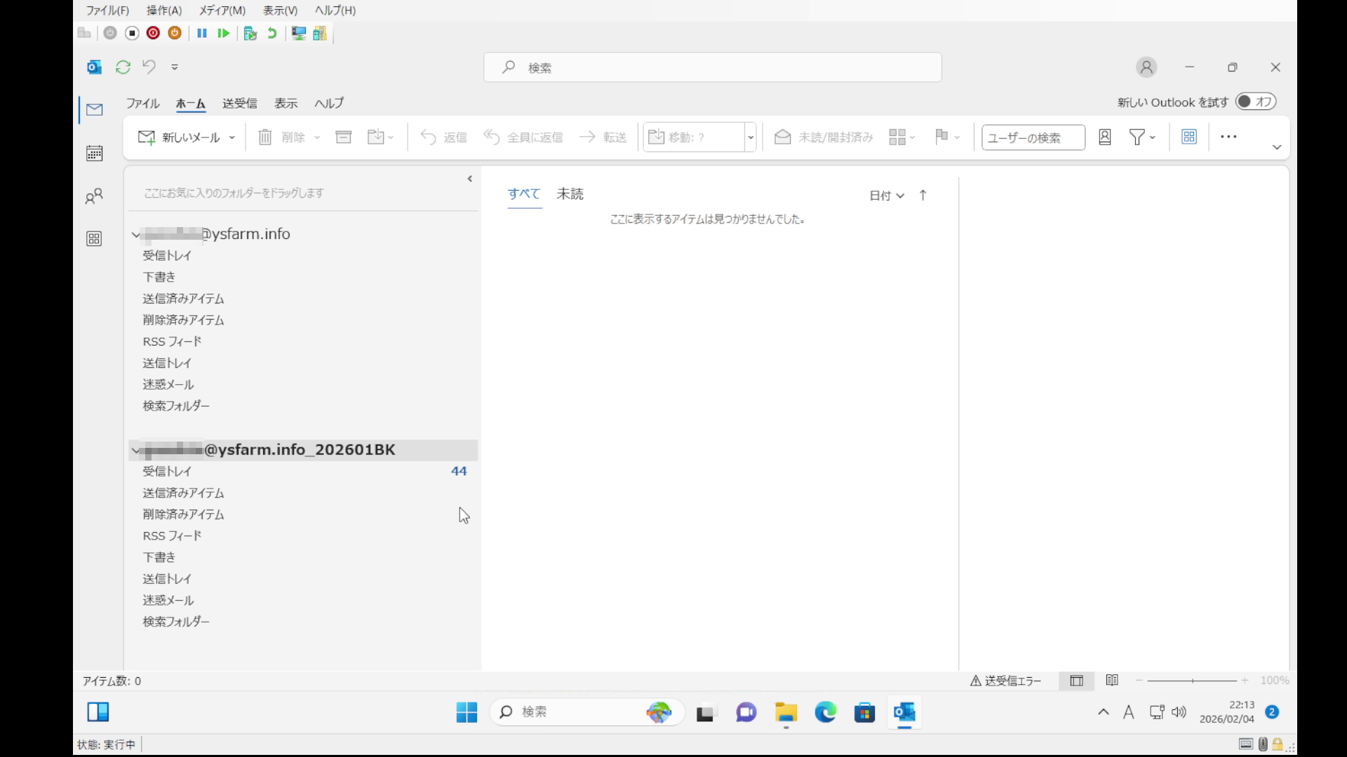 こちらの受信トレイは、データを参照しているに過ぎないので今後メールが増えることはありません。