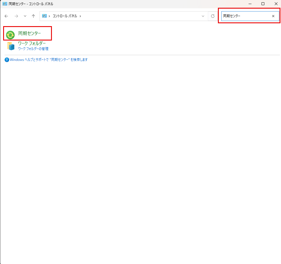 検索窓から「同期センター」で検索します。