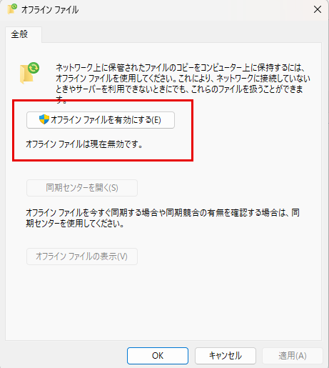 「オフラインファイルを無効にする」