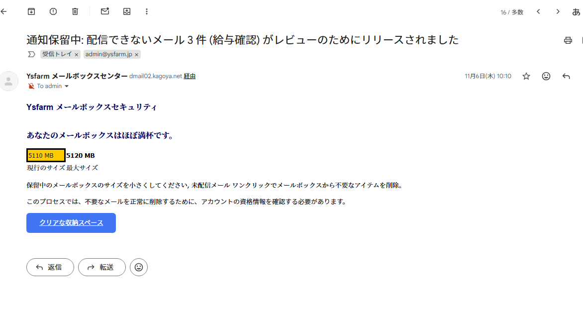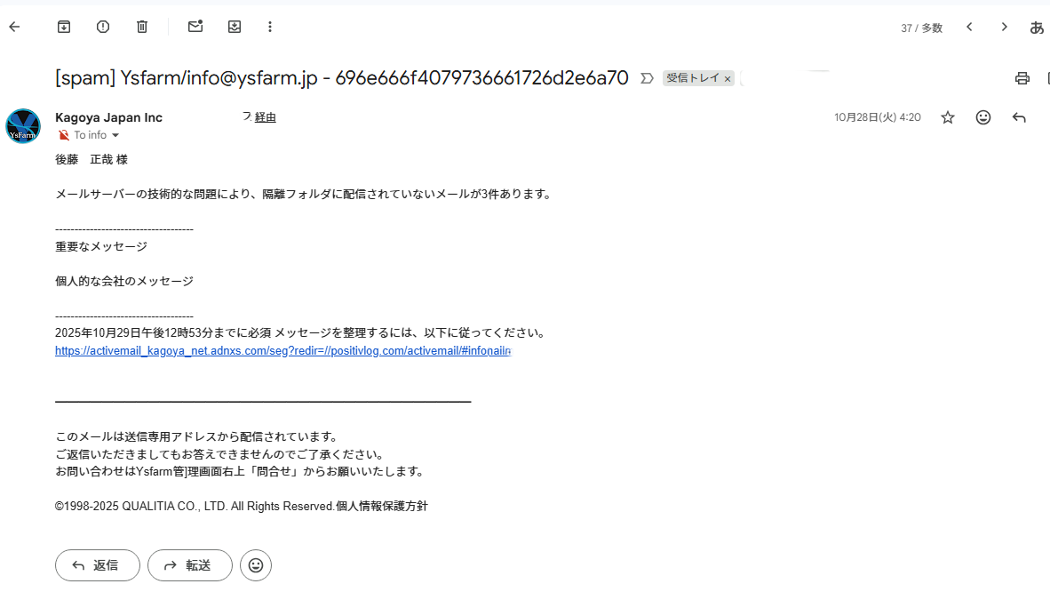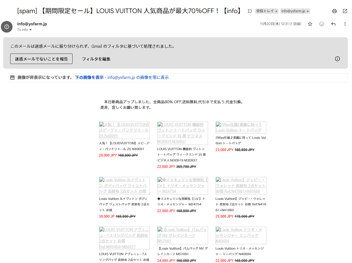 当社で使用しているGmailではGoogleの強烈なフィルター機能でGoogleが迷惑メールと判定したものはすべて迷惑メールフォルダ(Gmailではタグ付け)してくれます。