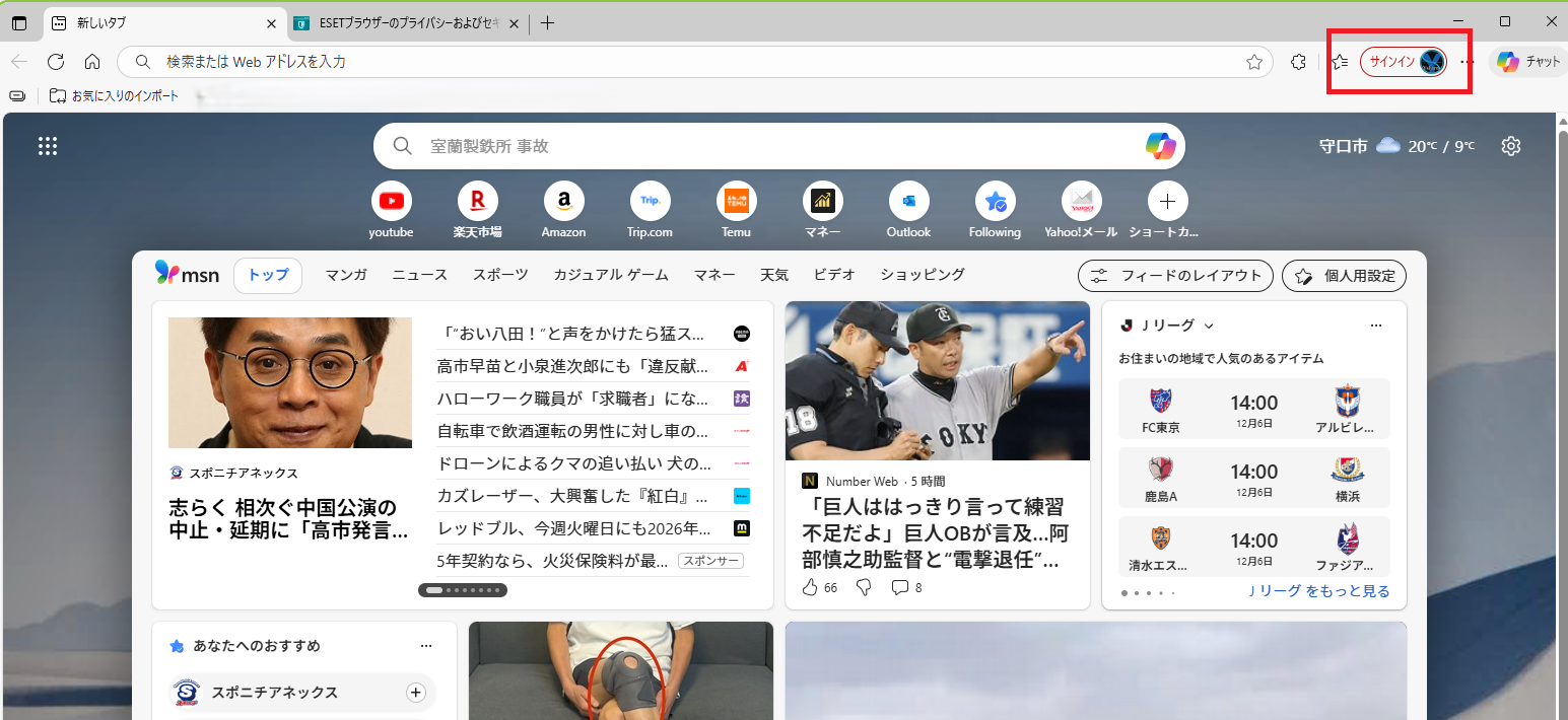 以下のようにブラウザの右上のユーザーアカウントアイコンが赤くなっていたり、再ログインを促される場合があります。
