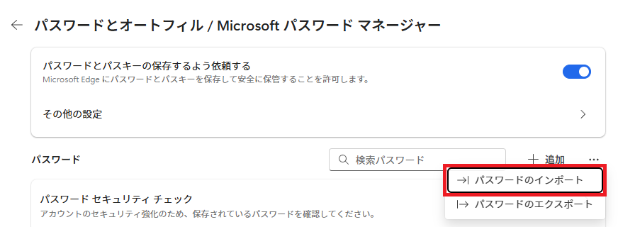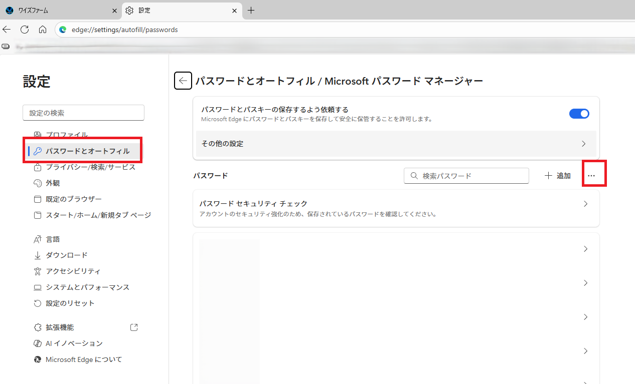 「パスワードとオートフィル」-「パスワードマネージャー」